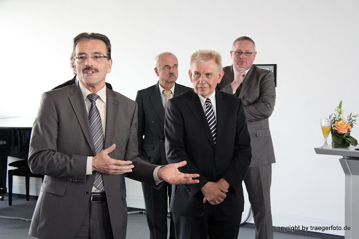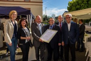 Im Rahmen des 30-jährigen Bestehens der Firma überreichten Kreishandwerksmeister Peter Mumbauer, Geschäftsführer Gerhard Schlau und Ehrenkreishandwerksmeister Jürgen Günster eine Urkunde für das langjährige erfolgreiche Wirken in Handwerk und Denkmalpflege.